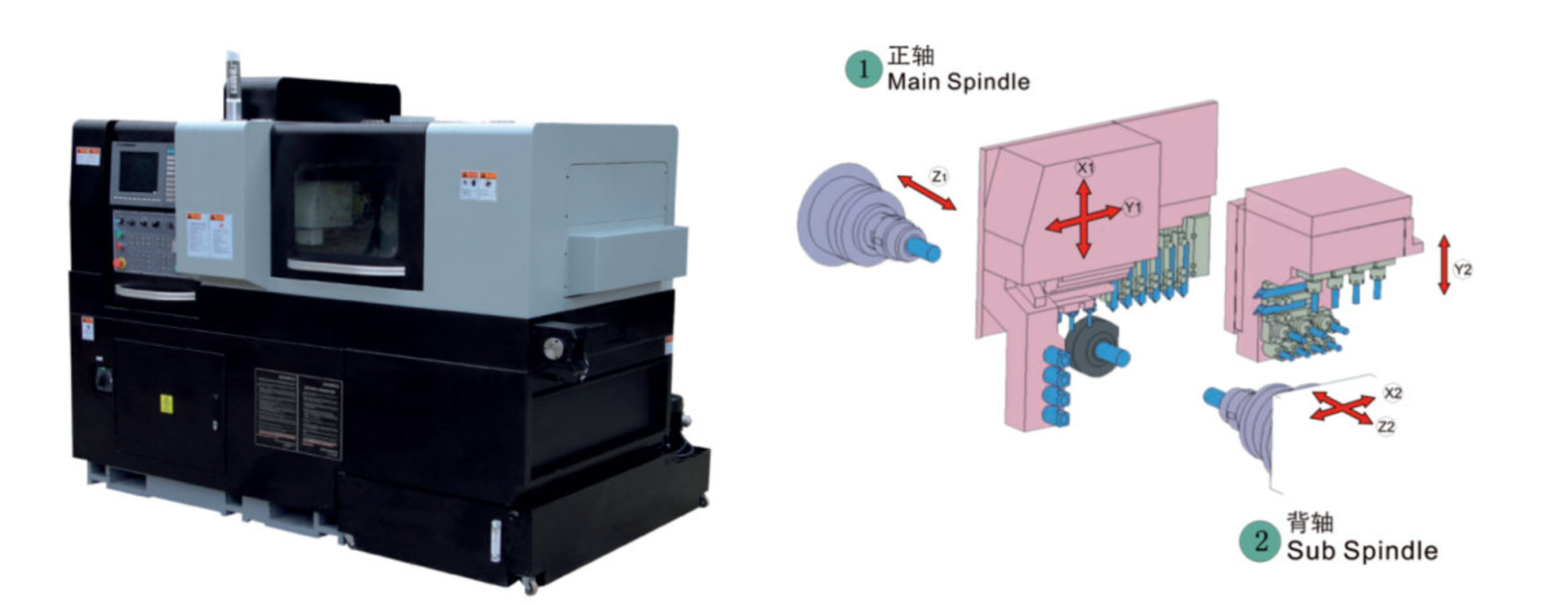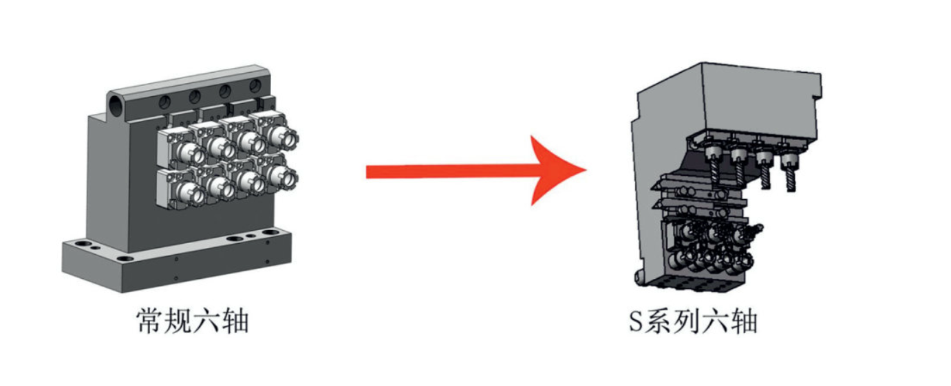 В стандартную комплектацию шестиосевого токарного станка серии S входят 4 боковых вращающихся инструмента ER16. При нехватке мест можно установить 3 боковых вращающихся инструмента, заняв 1 место ER16, что позволяет получить максимум 6 боковых вращающихся инструментов; в то же время, фрезерование происходит сверху вниз, что обеспечивает более высокую жесткость фрезерования по сравнению с боковыми вращающимися инструментами.