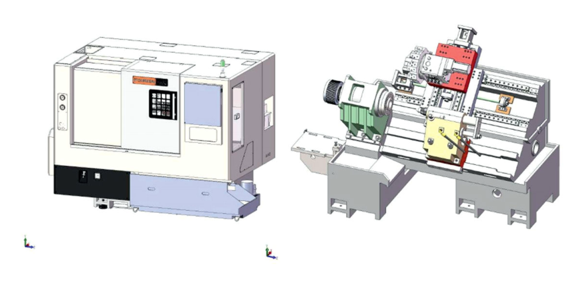 Станок объединяет механическую, электрическую и масляную системы, и спроектирован с учетом эргономики. Он обладает преимуществами полной защиты, компактной конструкции, экономии пространства, простоты в эксплуатации и удобства в обслуживании. Основание выполнено из цельного высокопрочного чугуна с наклоном 45°, обеспечивающим плавное удаление стружки и оптимальное пространство для резки. Возможна установка манипулятора и транспортера для стружки. Направляющие в осях X и Z используют линейные направляющие Taiwan HIWIN, что значительно снижает сопротивление трению при скольжении направляющих и обеспечивает отличные динамические характеристики. Основание выполнено из цельного высокопрочного чугуна, обеспечивает плавное удаление стружки и оптимальное пространство для резки. Шпиндель использует узел, произведенный SKF/NSK, и подвергается прецизионной динамической балансировке. Подшипник постоянно смазывается, что обеспечивает плавное вращение на высокой скорости и минимизирует термическую деформацию. Станок оснащен высокоэффективной автоматической системой прерывистой cмазки, которая обеспечивает централизованную смазку направляющих станины и винтовых пар в осях X/Z в нужное время, что гарантирует постоянное хорошее состояние смазки всех направляющих поверхностей станка и продольных и поперечных винтов. Станок оснащен 8-позиционной револьверной головкой с сервоприводом, что делает размещение и настройку инструмента более удобными. Держатель инструмента надежен, что способствует повышению производительности станка. Зажим заготовки осуществляется с помощью 10-дюймового полого патрона, что обеспечивает надежность и высокую эффективность.